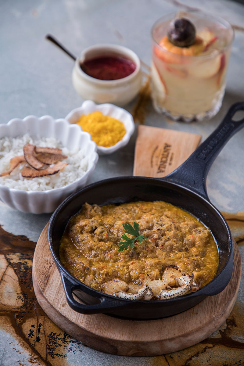 Especialidades da casa, as tortas aparecem em sabores como bobó de camarão, tarte tartin de tomate, galette de figo com presunto cru, e dividem as atenções com pratos como a moqueca de caranguejo e o camarão Thai.
