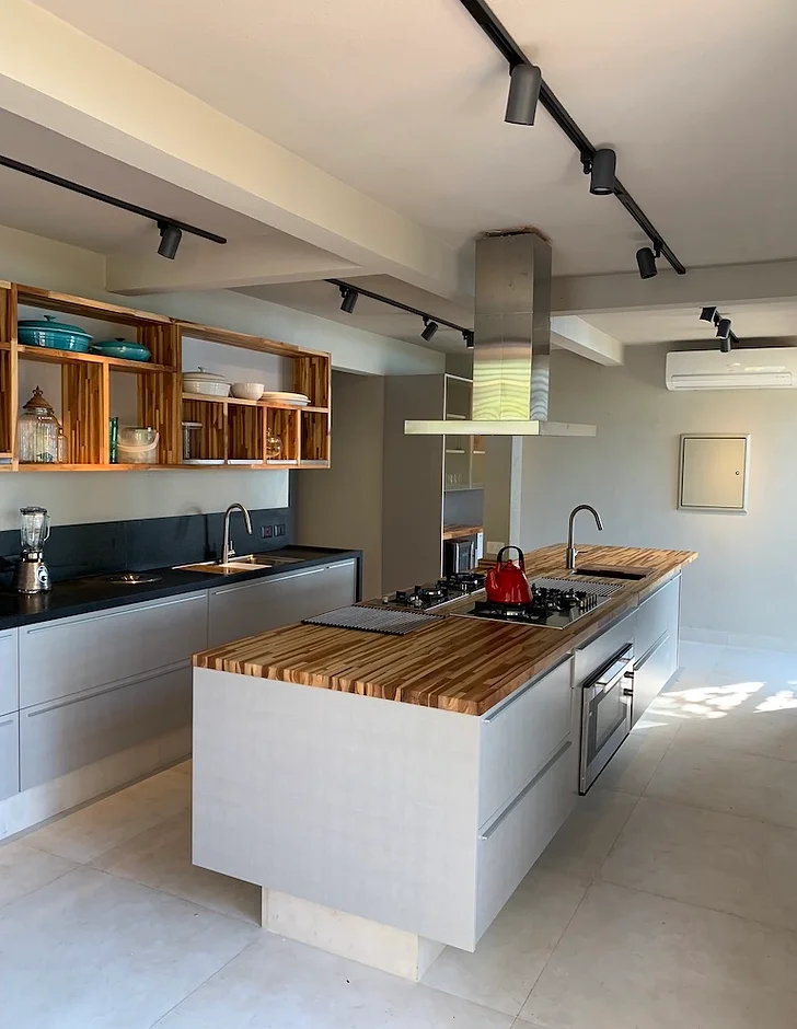 “Dei preferência aos materiais como madeira, piaçava e vidro, e revestimentos sempre os mais naturais possíveis, considerando o máximo de fornecedores locais, da marcenaria às esquadrias”, conta a arquiteta.