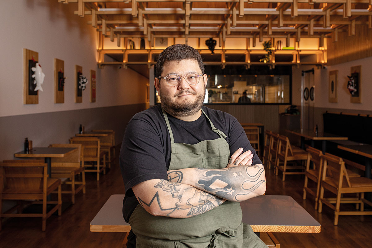 Em seu novo restaurante Kotori, o chef Thiago Bañares investiu na técnica japonesa yakitori, que aproveita todos os cortes do frango, servindo-os em espetinhos de bambu.