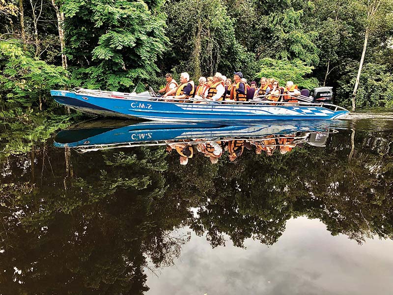 Nadar ao lado de botos rosas, pescar piranhas, visitar os crocodilos à noite, identificar os ruídos dos bichos e sentir o perfume da floresta, visitar tribos indígenas, fazer trilha em plena selva, conhecer cidades flutuantes, grutas arqueológicas em Mamada, museu da borracha, artesanato local em Novo Airão e o estilo de vida das cidades ribeiras de Manaquiri, Careiro e Acajatuba fizeram parte das inúmeras vivências que essa viagem proporciona. Sem falar da gastronomia a bordo, sob comando da cozinheira Dila, que nos apresentou delícias da cozinha regional e vegetariana com maestria