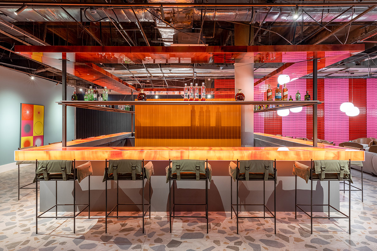 The Bar Caracol, marca presença novamente no evento, com uma grande bancada de vidro translucido na cor Stone o balcão e um convite para sentar e apreciar o local cheio de elegância.