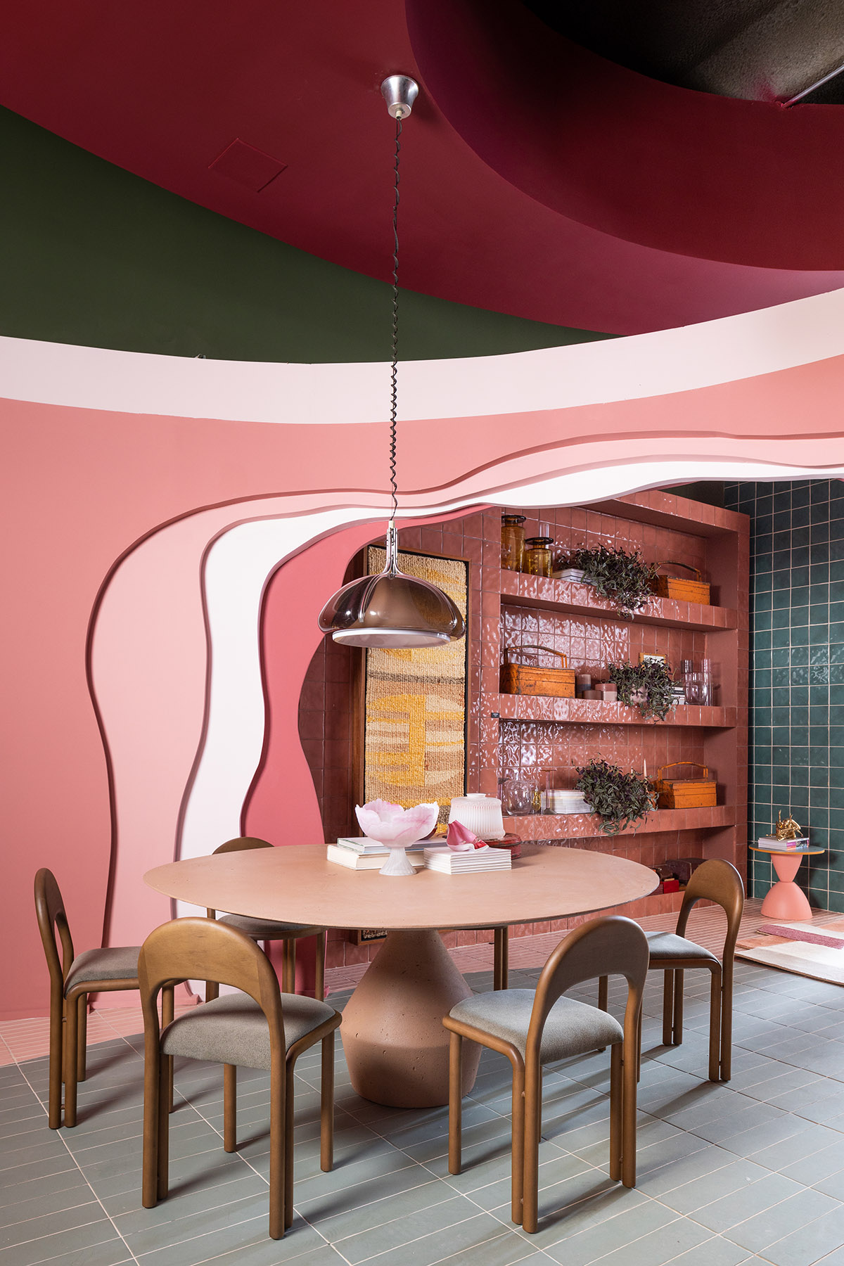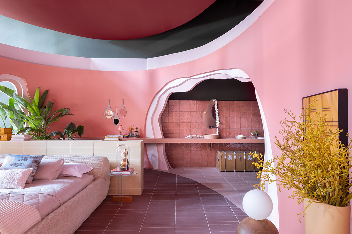 Criando a releitura de uma mulher de 64 anos, o arquiteto Ricardo Abreu, cria a Casa Coral, formas orgânicas, tons de rosa, dão imponência ao local e nos permite uma imersão ao universo feminino.