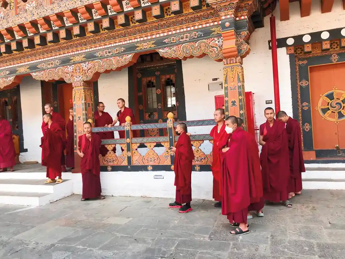 No Butão, a fé no budismo se faz predominante e visível em todos os aspectos, seja na arquitetura de estupas e mosteiros, seja nas coloridas bandeiras de oração, nas vestimentas dos monges, na gentileza das pessoas, nos festivais, no conceito de felicidade e nas leis baseadas em princípios de compaixão e não-violência.