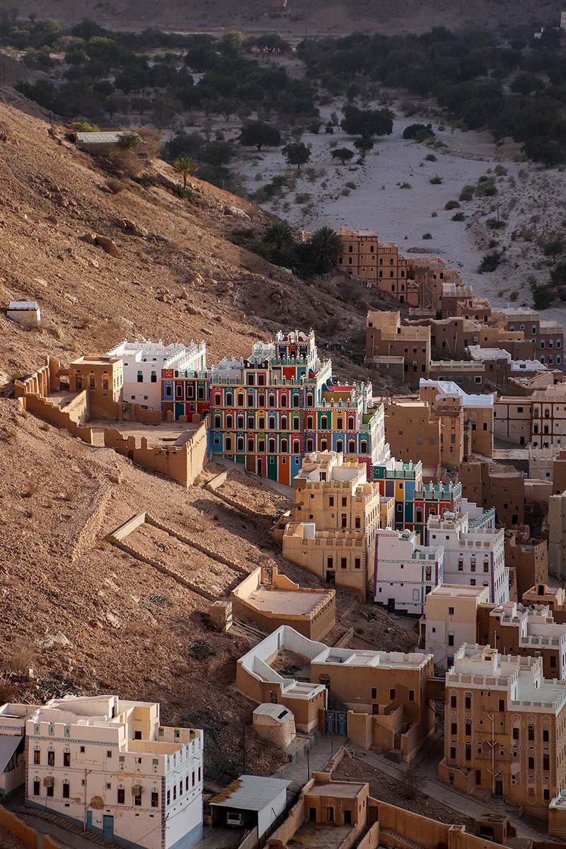 A ocupação britânica trouxe opulência aos múltiplos palácios de comerciantes que ficaram para trás, majoritariamente em Tarim, e os desfiladeiros verticais envolvem as povoações, das maiores às menores, onde agricultoras e pastoras desfilam seus chapéus de palha pontiagudos e os vendedores nos mercados tomam-nos pelas mãos e nos levam a provar iguarias, transpondo toda e qualquer barreira de comunicação.