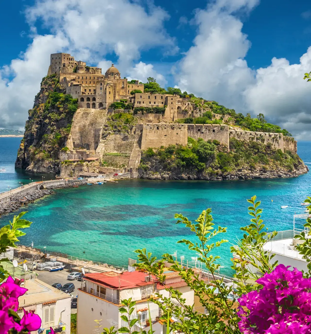 Ischia está no golfo de Nápoles, a apenas 45 minutos de high speed ferry da cidade e ao lado de Capri.