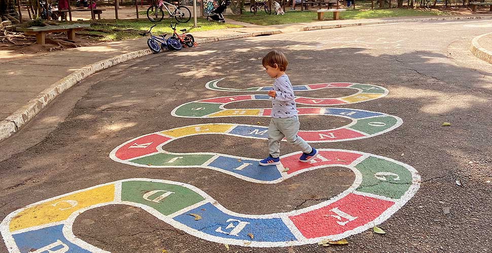Rotas da brincadeira da Amarelinha foram pintadas nas praças Gastão Vi- digal, Guilherme Kawall, Desembargador Manoel Gomes de Oliveira, dos Incas, Morungaba e General San Martín, para tirar a criançada da frente das telas. Em época de pandemia, com crianças presas em casa por mais tempo, a associação de bairro Ame Jardins faz um convite para elas brincarem ao ar livre, com toda segurança, ou seja, sem aglomeração e com máscaras.