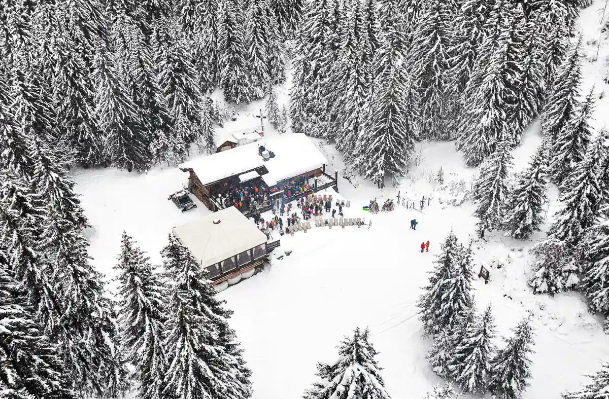 A 2.345 metros de altitude, em Mottaret, pode-se chegar até ele esquiando ou pelo teleférico, para um almoço animado, regado a carnes, vinhos e música, desfrutando de uma vista de 360 graus do Mont-Blanc.