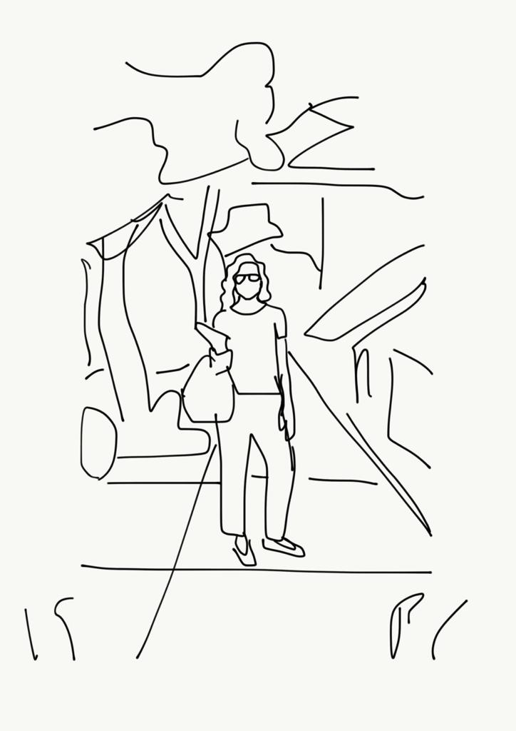 Eu conheci o Pedro Silva, através de uma parede desenhada na loja Pair aqui em São Paulo. Era 2017, e o Pedro tinha sido convidado a criar estes desenhos, croquis de personagens da moda no Brasil,e lá estava eu, representada por ele junto a outros nomes. Fiquei curiosa pelo trabalho do artista e quando fui no verão de 2019 para Nova York, fui visitá-lo e conhecer o seu espaço. A partir deste encontro nos tornamos amigos.