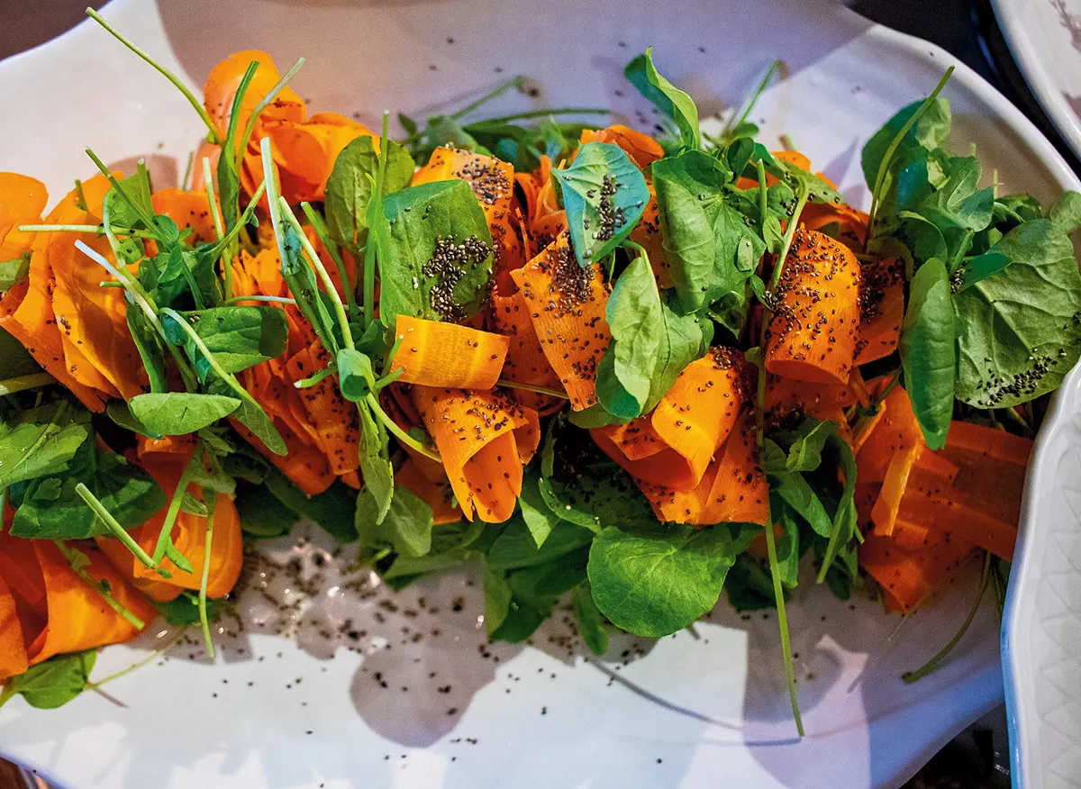 Sua culinária conquista paladares com extenso repertório de receitas criativas, dispostas no sistema bufê no almoço, com duas mesas grandes e fartas de pratos frios e quentes, preparados diariamente sob os olhares atentos da chef, e à la carte no jantar, além de café da manhã. O grande atrativo é o bufê de saladas, que usa os legumes nas formas mais variadas e em criações inusitadas. O prato quente também não é nada trivial, já que mistura sabores e tem inspiração em várias culturas. E as sobremesas são um capítulo à parte. Tem opção para todos os gostos.