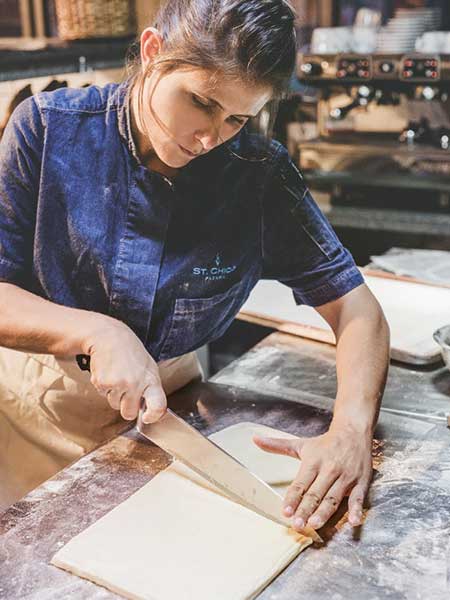 Helena formou-se em gastronomia pelo Senac Águasde São Pedro em 2004, e seu primeiro estágio foi no Txai Resort, em Itacaré, Bahia. Dois anos depois, se mandou para Outer Banks, na costa da Carolina do Norte, EUA, para sertrainee em um resort de luxo. De volta a São Paulo, passoupelo Lola Bistrot, Brasil a Gosto e Dalva e Dito. E foi chamada para a implantação do INBP Brasil (InstitutNational de laBoulangerie-Pâtisserie) por aqui. Um ano no Ceará, e a padeira foi para a Europa, onde se encantou com as focaccias italianas. Voltou cheia de ideias. “Chamei a Tetê Silvé- rio e, juntas, apresentamos o projeto para nossos outros dois sócios, Cyril e Jean-Pierre Bernard, e eles toparam na hora”, conta.