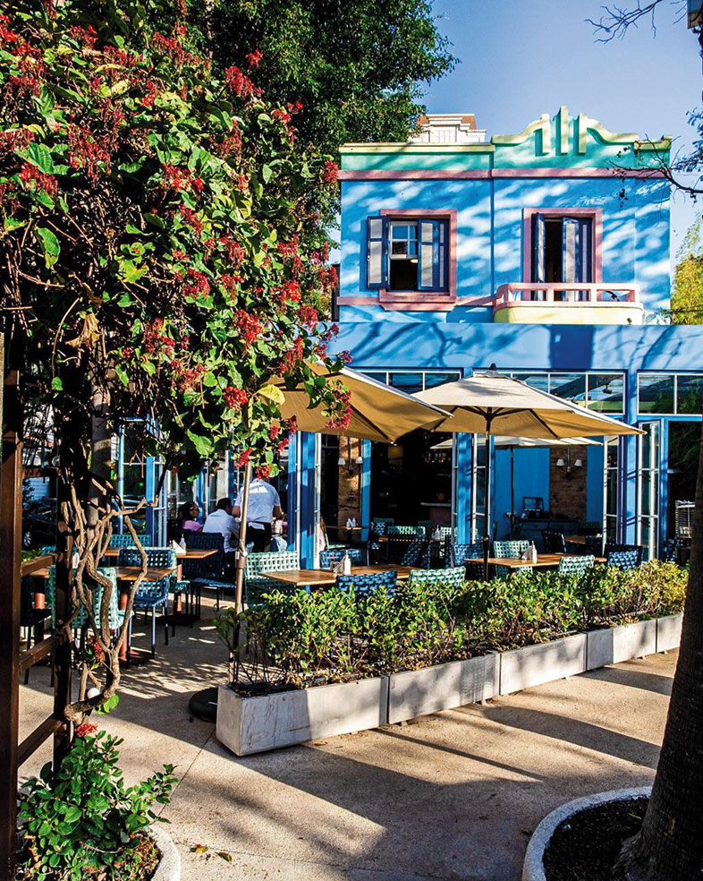 Espaço moderno com cozinha mediterrânea de influência kosher (opções sem glúten, vegana e vegetariana) do chef Pedro Renofio.