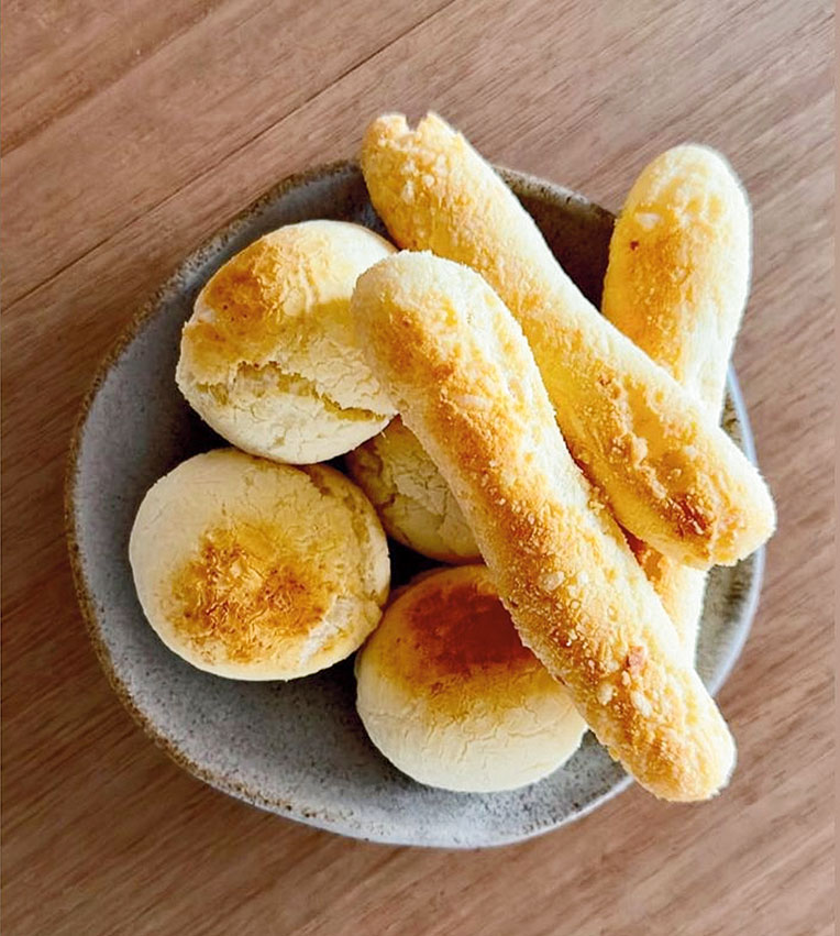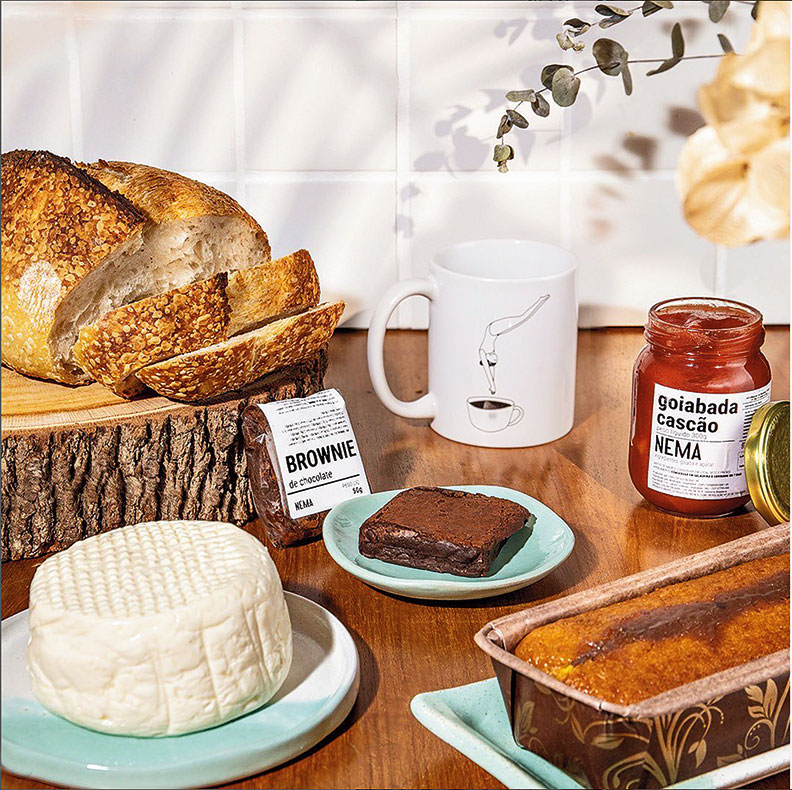 Pequena mercearia, pão de queijo de alma mineira e Pequelitos cheios de queijo, além de cafés.