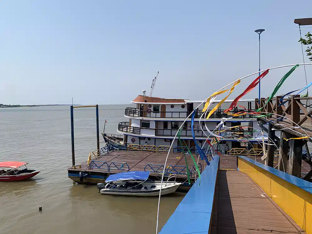 Sugiro que os visitantes peguem uma lancha no trapiche da orla da cidade para conhecer de perto o encontro das águas e os botos tucuxi e cor-de-rosa, que geralmente dão o ar da graça no final da tarde. O passeio também inclui o Lago do Maicá, onde muitas espécies silvestres podem ser avistadas, como bichopreguiça, macacos, aves e peixes, além da nossa floresta, e então finalizaria com uma caipirinha de mari-mari e um tira-gosto de isca de peixe no restaurante Jacaré (@casadojacarestm), do outro lado do rio. Tudo dura em média 2 horas e indico o guia Elvis (93 99131-9245), ele sabe muito sobre a nossa região.