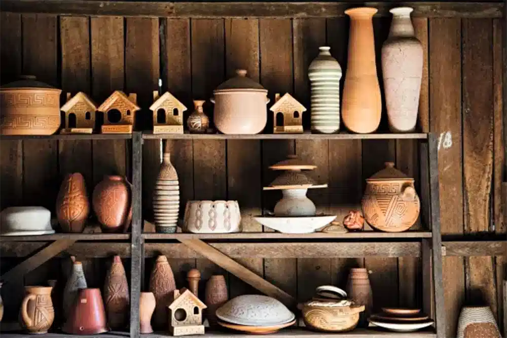 Uma das tradições Por Clara Beatriz Imbiriba mais antigas da Amazônia, há os trançados feitos em palha, que são extraídos e tingidos com pigmentos naturais, como jenipapo, crajiru e mangarataia; e cerâmica Tapajônica, que também tem sua beleza, feita em barro e com desenhos culturais. Encontra-se todos esses artigos na loja Regional Muiraquitã, que fica na orla da cidade e no Mercado Municipal.