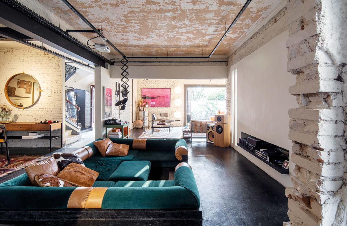 Com 430 m2, a casa passou por uma ampla reforma em 2019 para adquirir a atmosfera urbano-industrial. Originalmente compartimentada, ganhou reforços estruturais através de vigas metálicas para viabilizar a amplitude dos espaços internos. O projeto luminotécnico tirou partido das vigas metálicas aparentes, que foram utilizadas também como suporte para a iluminação da área social, com efeito sofisticado e futurista.