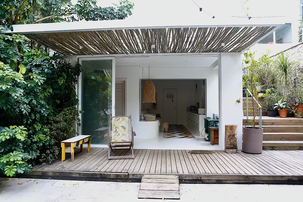 Quando mudaram para lá, há 17 anos, fizeram uma reforma no imóvel de 1949, sem alterar sua estrutura. Mas, ao derrubarem paredes e transformarem a entrada de carros em uma ampla sala com iluminação natural e fazerem da garagem, no subsolo, um family room hoje bastante utilizado por Mathias e seus amigos, a casa térrea ganhou outra forma. E conta histórias.