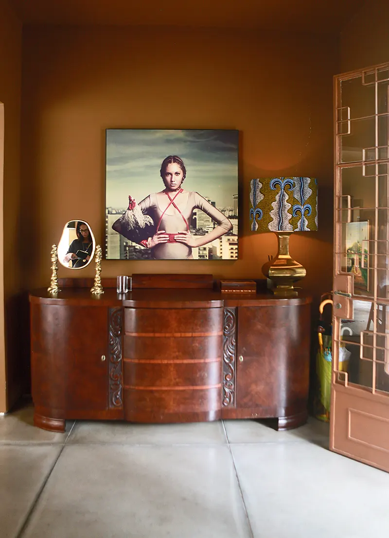 Além de móveis que trouxeram de outras moradas, os donos nunca param de garimpar peças e obras de arte, que se espalham pelos ambientes. Entre os muitos modelos da coleção de bancos de Fábio, encontramos um original do Sesc Pompeia de Lina Bo Bardi – uma preciosidade em meio a tantos objetos que trazem lembranças de viagens e de situações.